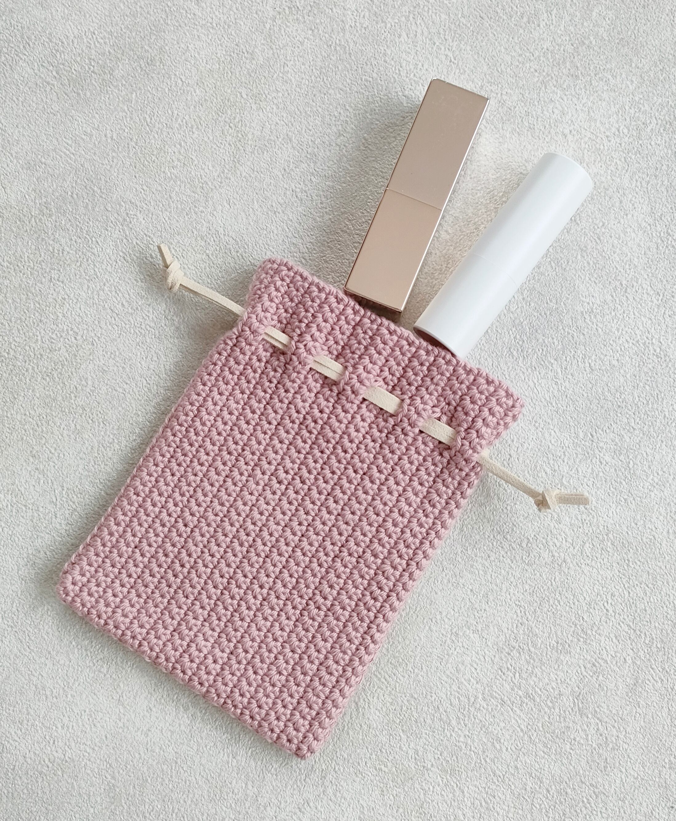 手編みの巾着ポーチです.